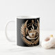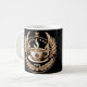Coffee Commander Militärinsignien, mit einer dampfenden Kaffeetasse mit verzierten Flügeln und Sternen, die sie umgeben.