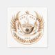 Coffee Commander Militärinsignien, mit einer dampfenden Kaffeetasse mit verzierten Flügeln und Sternen, die sie umgeben.