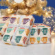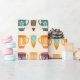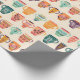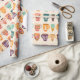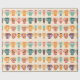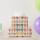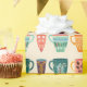 Eine Vielzahl farbenfroher Kaffee- und Teebecher mit unterschiedlichen Blumen- und Herzmustern sind in einem sich wiederholenden Muster auf weißem Hintergrund angeordnet. Jede Tasse präsentiert eine einzigartige Kombination von Farben und Designs und schafft so ein lebendiges und symmetrisches Display.