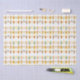 Eine Vielzahl farbenfroher Kaffee- und Teebecher mit unterschiedlichen Blumen- und Herzmustern sind in einem sich wiederholenden Muster auf weißem Hintergrund angeordnet. Jede Tasse präsentiert eine einzigartige Kombination von Farben und Designs und schafft so ein lebendiges und symmetrisches Display.