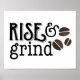 Unser niedlicher und lustiger Typografie-Kunstdruck macht Ihre Küche oder Kaffeeküche zu einem großartigen Ergänzung! Design zeigt "Rise and Grind" in trendiger schwarzer Typografie mit drei Coffeebohnabbildungen in einem Espressobraun-Aquarell-Effekt.