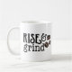 Vergiss den Aufstieg und den Glanz. Wenn es eher wie "Aufstieg und Grind" bei Ihnen zu Hause ist, nehmen Sie sich unsere niedliche typografische Tasse mit der Phrase in schwarzer Schrift mit drei Kaffeebohnabbildungen mit einem coolen Aquarelleffekt an.