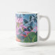 Helles und lebendiges impressionistisches Gemälde von Blume-Arrangement auf einer Kaffeezubereitung in einer Tasse