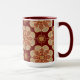 Diese dekorative Tasse ist mit Goldmedaillons auf Wein dekoriert. Das Innere und der Griff der Tasse sind Maronen. Dieses Muster stammt aus einem originalen Fliesendesign. Die Medlions und die kräftigen Farben verleihen ihm ein böhmisches Ambiente. Die Farben sind ocher und pfirsichfarben auf einem Weinboden. Nutzen Sie dies auf Ihrer Küche Backsplash, Bad oder Kamin. Es ist perfekt für Hütte oder Bauernhof. Dieses Design stammt aus Oregon Fliesenhersteller Fay Jones Day.