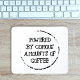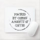 Powered by Copious Amounts of Coffee - Ein humorvolles Textdesign über Kaffee mit einem Kaffeefleck rund um das Zitat.