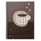 Notebook mit einem köstlichen Design. Das Wort "Kaffee" macht die Form einer Tasse, und die Herzen schweben um Bruchstücke von Mocha, Latte, Cappuccino, Macchiato, Espresso und americano. Ideal für jeden Kaffeeliebhaber.