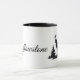 Diese Keramik Kaffee-Tasse wird mit einem Kunstdruck eines Elchs mit Yellowstone-Text gezeigt. Schwarzes Interieur und Griff. Passen Sie dieses Objekt an oder kaufen Sie, wie es ist. Bild