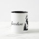 Diese Keramik Kaffee-Tasse wird mit einem Kunstdruck eines Elchs mit Yellowstone-Text gezeigt. Schwarzes Interieur und Griff. Passen Sie dieses Objekt an oder kaufen Sie, wie es ist.