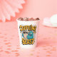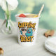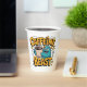 Niedliches lustiges Monster mit einer riesigen Kaffeetasse.