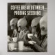 Sogar Alien Entführer brauchen eine Kaffeepause! Dieses Vintage Schwarz-Weiß-Foto vereint vier Außerirdischen Platz in Anzügen, die sich bei einer Tasse Kaffee in einem Café entspannen.