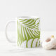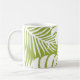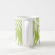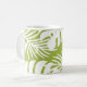 Schöne hellgrüne Farbe der Kaffeetasse mit Blattdruck.