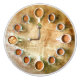 Eine Kaffeetasse voll Kaffee und Löffel kreiert eine Kaffeezeit-Uhr auf diesem rustikalen, aber modernen künstlerischen Design.