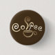 Dieses ist ein Spaßknopf/-Button für jedermann.  Es kennzeichnet eine Kaffeetasse auf einem braunen Hintergrund.