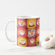 Kaffeebecher mit verschiedenen Hintergrundgrafiken. Für Kaffeeliebhaber