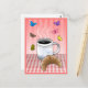Kaffeezeit mit einem köstlichen Croissant und einigen bunten Schmetterlingen.