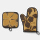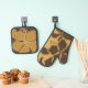 Kailua Hibiskus Hawaiian Floral Gold Brown Ofenhandschuh & Topflappen-Set