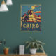 Mit diesem Vintagen Plakat gelangen Sie bequem in die geschäftigen Straßen Kairos. Mit der Sphinx im alten Ägypten, mit mutiger Typografie und lebhaften Farben, Set vor einem ikonischen Hintergrund von Pyramiden und Wüstenlandschaften und dem zeitlosen Charme der ägyptischen Hauptstadt, ist es ein Stück Geschichte, das Sie in den Händen halten können.