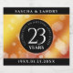 Feiern Sie den 23. Hochzeitstag des Kaisers Topaz mit diesen stilvollen Getränkemarken! Elegante, weiße Schriften mit sechseckigen Konfetti auf einem tiefrot-gelb-orangefarbenen Moirahmen-Hintergrund verleihen diesem besondere Anlass eine unvergessliche Touch und einen außergewöhnlichen Meilenstein. Personalisieren Sie mit den Namen des Paares und den Jahren der Ehe. Hinweis: Dieses Design ist optimiert für Standard-Weine, Champagner und Bierflaschen. Design © W.H. Sim. Weitere Informationen unter zazzle.com/expressionsoccasions