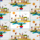 Eine Gruppe Kayakers, die auf dem Strand partying sind, wird auf diesem bunten Gewebe gekennzeichnet. Es inspiriert eine endlose Vielzahl von Projekten, um ein an die glücklichen Sommertage zu erinnern, die auf dem Strand oder den Zeiten tollen in den Inseln verbracht werden.