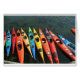 Die bunten Kajaks, die im Wasser warteten sitzen gerade, um zu gehen! Verzierung einer wunderbaren Linie der Produkte von T - Shirts zu Tassen.