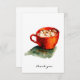 Mit einer knallroten Tasse. Heiße Schokolade mit Marshmallows. Erinnern Sie sich an einen gemütlichen Tag mit Freunden und Familie.