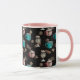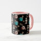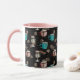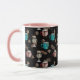 Ein niedlicher, gemütlicher Winterdruck aus heißer Schokolade und Marshmallows, Kakao, Eiscreme, Schokoladenkuchen und Keksen. Perfektes Muster für einen kalten Wintertag. In braun, aquamarin, rot, weiß und schwarz.
