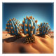 In diesem Kunstwerk steht eine Kakteen-Pflanze hoch und mächtig in einer trockenen, trockenen Wüstenlandschaft, in der der Kontrast zwischen ihrer spitzen und groben Fassade ein einzigartiges und atemberaubendes visuelles Erscheinungsbild schafft.