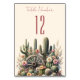 Fügen Sie Ihrer Hochzeitsdekoration eine Touch rustikaler Eleganz hinzu, mit diesem Tischnummer-Schild, das eine wunderschöne Anordnung von Wüstenkakteen und ein Vintages Wagenrad im Aquarellstil aufweist. Das naturlich inspirierte Design verleiht Ihren Tischen Wärme und Charme und eignet sich somit ideal für eine Wüste, eine rustikale Hochzeit oder eine Hochzeit mit dem Thema Boho. Passen Sie den Text oder die Tischnummer auf der Karte an, um Ihre Bedürfnisse zu Anzug. Ideal für Feiern im Südwesten, rustikal, im Freien oder im Landhausstil. Passt wunderschön zur Hochzeitsarbeit und zur Beschilderung aus derselben Kakteen- & Wagenradkollektion für eine zusammenhängende Veranstaltungsästhetik. Mit diesem charmanten Kakteen- und Wagenrad-Tischnummer-Schild, auf dem die Liebe dem südwestlichen Geist entspricht, führen Sie Ihre Gäste stilvoll.