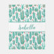 Ein schick weißer Hintergrund mit einem skurrilen Muster aus gemalten Kakteen, Kakteen, Sukkulenten und roten und grünen Herzen. Für Jugendliche und Frauen. Personalisieren Sie Ihren Namen und fügen Sie ihn hinzu. Der Name ist mit einem großen, modernen, handgeschriebenen Stil geschrieben. Grüne Buchstaben.
