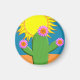 Wüstenbild eines Kakteen mit rosa Blume an sonnigen Tagen. Design im Cartoon. Magnete für die Dekoration. Geschenkidee.