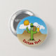 Cartoon von lächelnden Kakteen mit Sonnenbrillen in der Wüstenlandschaft, die eine Bierkaktus halten und Daumen geben. Benutzerdefinierter Text.