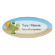 Cartoon von lächelnden Kakteen mit Sonnenbrillen in der Wüstenlandschaft, die eine Bierkaktus halten und Daumen geben. Benutzerdefinierte Textfelder für Namen und Beruf.