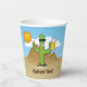 Cartoon von lächelnden Kakteen mit Sonnenbrillen in der Wüstenlandschaft, die eine Bierkaktus halten und Daumen geben. Benutzerdefinierter Text auf beiden Seiten.