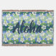 Königsblau, Ozeanblau, Maisblume, Palmen- und Kalkgrün. Whimsikaler Hibiskus und Blume der Plumeria tanzen auf tonalen Palmen-Blätter auf einer gestreiften Krawatte gefärbten Farbmischung. Dieses Design wurde von den Aloha Shirts und tropischen Designs für die 70er und Blume Power inspiriert. Dieses Design kommt in verschiedenen Farben. Passen Sie den Gruß an!