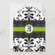 Vintage Schwarz-Weiß-Damast-Muster mit Apple Green Trim Hochzeitseinladungen. Ideal für Rokoko Barock, mittelalterliche Renaissance, Art Deco Art Nouveau, Roaring 20s Gatsby, Viktorianische Hochzeiten oder elegante Bauernhäuser Hochzeiten Themes Orte.