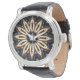 Uhr, Klassische Damenuhr mit schwarzen Lederarmband