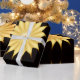 Kaleidoskop Design Hellgelber Weihnachtsstern auf schwarzem Hintergrund