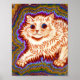 Poster mit Louis Wains Tiermalerei Kaleidoskop Cats III (1860-1939). Eine psychedelisch-weiße Katze ist von lila, blauen, grünen und gelben Farbtönen umgeben. Ein wunderbares Geschenk für Katzenliebhaber und englische Kunst.