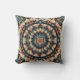 Ein lebendiges geometrisches Quiltmuster strahlt von der Mitte aus und schafft ein faszinierendes Mandala-Design mit verschiedenen Farbtönen, darunter aquamarine Grüntöne, Rostbraun und Beige