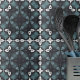 Diese dekorative Keramik Kachel ist ein wunderschönes Kunstwerk, das jedem Zimmer eine Touch Eleganz verleiht. Die Kachel weist ein sich wiederholendes Muster geometrischer Formen in Blau- und Grautönen auf, die symmetrisch angeordnet sind, um einen faszinierenden Kaleidoskop-Effekt zu erzeugen. Der schwarze Hintergrund hebt die blau-grauen Formen hervor, während die weißen geometrischen Formen eine Touch der Eleganz verleihen. Diese Kachel ist ideal, um jedem Raum einen Pop von Farbe und Interesse hinzuzufügen.