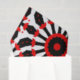 Lebhaftes Gewebe-Papier-Design mit einem nahtlosen Muster aus geometrischen Formen in rot, schwarz und weiß.
