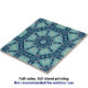 Diese Keramik-Kachel zeichnet sich durch ein einzigartiges, faszinierendes kaleidoskopisches Design aus. Die komplexen geometrischen Muster entfalten sich in symmetrischer Harmonie und schaffen so ein faszinierendes visuelles Erlebnis. Die Kachel ist mit einer eleganten Mischung aus tiefer Blues und helleren Farbtönen geschmückt, was einen auffallenden Kontrast schafft, der das Auge in die Mitte zeichne. Jede Ebene des Musters zeigt eine neue Detailstufe, die dem Design Tiefe und Komplexität verleiht. Das Design der Fliese erinnert an traditionelle Mosaikkunst, trägt aber aufgrund ihrer Präzision und Komplexität einen zeitgenössischen Flair. In jeder Ebene des Designs sind verschiedene geometrische Formen enthalten, darunter Diamanten und Hexagonen, was zu seiner visuellen Tiefe und seinem Interesse insgesamt beiträgt.