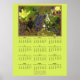 Weinreben. Foto eines Haufen lila Trauben, die inmitten von grün und orange gesprenkelten Blätter hängen. 12 Monate Kalender unten.