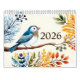 Eine skurrile Abbildung eines Vogels, der auf einem Ast steht, umgeben von vier unterschiedlichen Jahreszeitenkalendern. Der Absturz des Vogels von der eisigen Blues und Weißen des Winters zu den lebhaften Blüten des Frühlings, den warmen Gelbtönen des Sommers und den Blätter des Herbstes zeigt die zyklische Schönheit der Jahreszeiten. Der Kalender ist mit Blume und Blätter geschmückt, die zu jeder Jahreszeit passen und so ein Gefühl der Harmonie und Ausgeglichenheit schaffen.