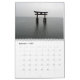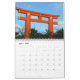 Kalender mit schöner Fotografie des japanischen torii. Manchmal gemacht vom Holz und vom Stein manchmal gemacht, werden sie häufig in ins Auge fallendem Vermilion gemalt. In der japanischen Tradition ist das torii ein Tor zwischen der gewöhnlichen Welt und der geistigen Welt. Deshalb werden sie normalerweise an den buddhistischen Tempeln und an den shintoistischen Schreinen gesehen.