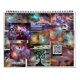 Jeden Monat bietet eine surrealistische Vision vom Kosmos kombiniert mit einer mondäne, aber inspirierende Szene unter einem Nachthimmel. Es gibt auch ein motivierend Zitat zusammen mit jeder Szene.