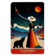 Entdecken Sie die Faszination von "California: Das Land der Träume" mit diesem atemberaubenden, bewegungsflexiblen Magneten! In dieser bezaubernden Szene steht eine Frau in einem lebendigen Kleid und ein breit brillanter Hut neben einem Bären, die beide an einem atemberaubenden Nachthimmel mit Planeten und Sternen aufblicken. Die Kulisse bietet majestätische schneebedeckte Berge und schwebende Palmen, die perfekt die vielfältige Schönheit Kaliforniens verkörpern. Über diesem skurrilen Tableau fängt der Satz "Kalifornien: Das Land der Träume" die Magie und das Abenteuer ein, die im Goldenen Staat erwartet werden.