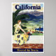 Vintages Bahnposter, das Kalifornien als Sommerziel fördert.