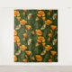Kalifornien-Mohn und -Motten auf dunkelgrün Wandteppich