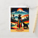 Feiern Sie die Wärme und Dynamik von "California: Where Sunshine Lives" mit dieser aufschlussreichen Reise-Postkarte! Diese bezaubernde Reise-Postkarte zeigt eine Frau in einem farbenfrohen Kleid und einen Hut, der neben einem Bären stehend ist. Beide blicken auf eine atemberaubende Landschaft, die Palmen und einen schneebedeckten Berg verbindet, die alle im warmen Licht eines dramatischen Sonnenuntergangs baden. Mit seinem Retro-surrealen Stil verkörpert das Kunstwerk die vielfältige Kulisse und den pulsierenden Geist Kaliforniens und ist somit eine perfekte Hommage an den bezaubernden Reiz des Goldenen Staat. Feiern Sie Ihr Abenteuer mit dieser Postkarte und behielt Ihre Wanderlust am Leben!